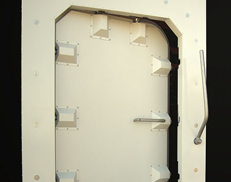 PaR Marine, through MST Ltd, has extensive experience providing door systems and panel systems applicable to threat levels for armor-piercing rounds up to 0.5-inch caliber and greater if required. Our ballistic protection properties can be combined with watertight A60 door systems or internal Safe Haven applications. These mission critical doors are weather and light proof as well as being shock qualified. Depending on your preference, doors and closures can be electro-mechanically or electro-hydraulically operated.